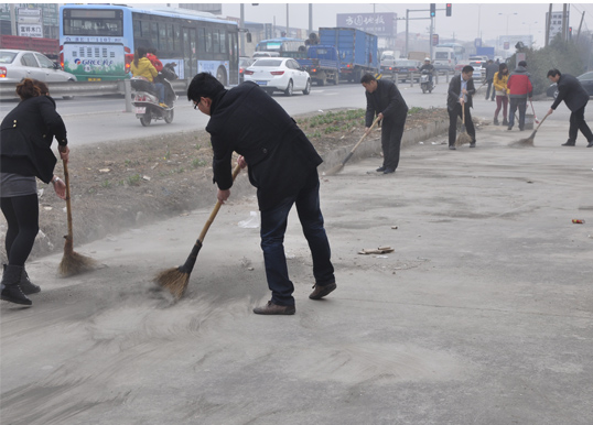 参加学雷锋活动的宅男导航色木业员工在打扫街道